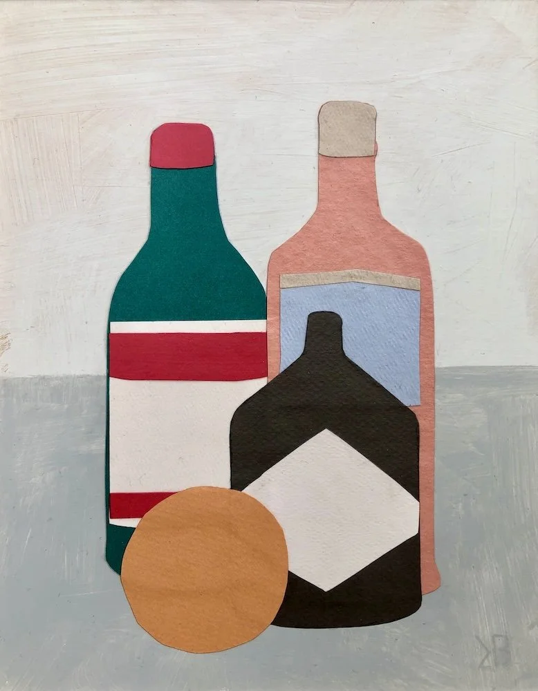 For Negronis, acrylic and collage on panel, 8x10in at Studio Gallery, San Francisco