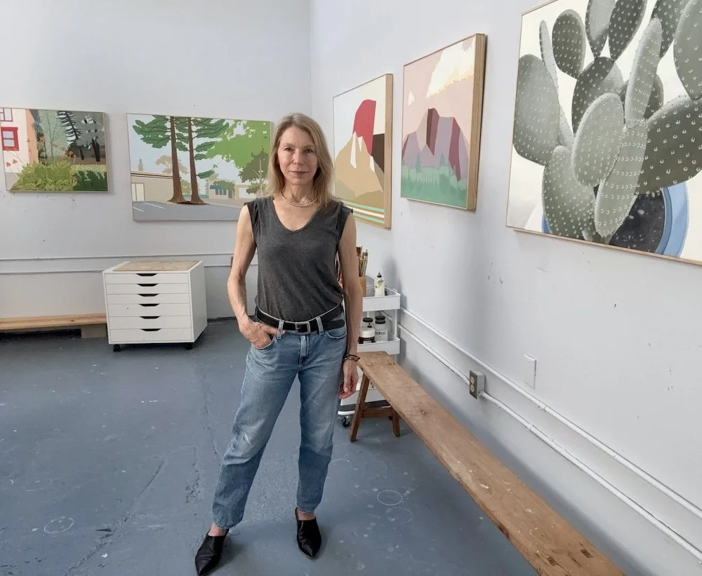 Kate Barrengos lives in Marin County, California and maintains a studio in Sausalito. Her work explores the natural world, including aerial and abstracted landscapes, as well as, still life and anthropomorphic portraiture of heroic women. Born and raised in Omaha, Nebraska, Kate studied biology and art at the University of Nebraska. In 1988, she moved to San Francisco. She continued her art education at the College of Marin where she received awards for watercolor painting. Her work is always evolving, toggling between realism and abstraction. Painting primarily with acrylic on linen, she uses color and line to create both tension and balance. Her work examines the impact people make on the earth, and how nature and civilization collide.